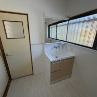 洗面脱衣室の床改修工事を行いました。長年の使用で床がふくらんだり、汚れが目立ってきたため、下地の補修を行い、防水性の高いクッションフロアへ張り替えました。湿気の多い場所でも安心して使えるようになり、見た目も明るく清潔な印象に一新。毎日使う空間だからこそ、快適さと耐久性にこだわったリフォームです。短期間の工事で大きく変化を実感できる人気の改修メニューです。